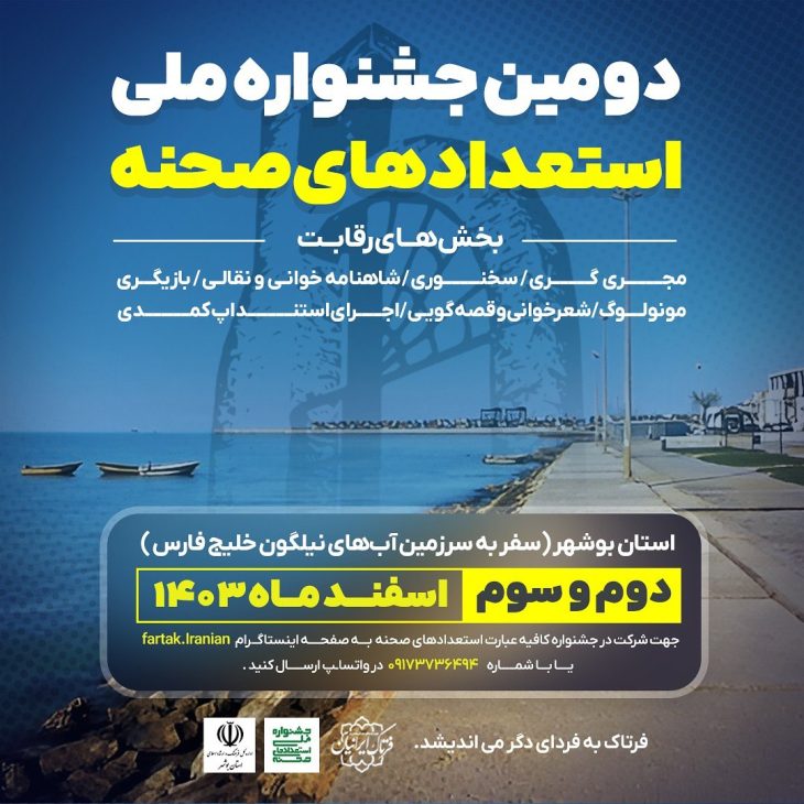 این جشنواره توسط موسسه فرهنگی هنری فرتاک ایرانیان در بخش های مختلفی اعم از مجری گری، سخنوری، شاهنامه خوانی و نقالی، بازیگری مونولوگ، شعرخوانی و قصه گویی و اجرای استندآپ کمدی در تاریخ ۲ و ۳ اسفندماه ۱۴۰۳ در استان بوشهر برگزار خواهد شد و پذیرای مهمانان از سراسر کشور می باشد.