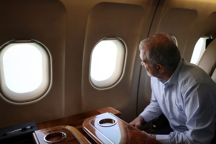 رئیس دولت پیش از فرود هواپیما، بازدیدی هوایی نیز از محل وقوع حادثه داشت.