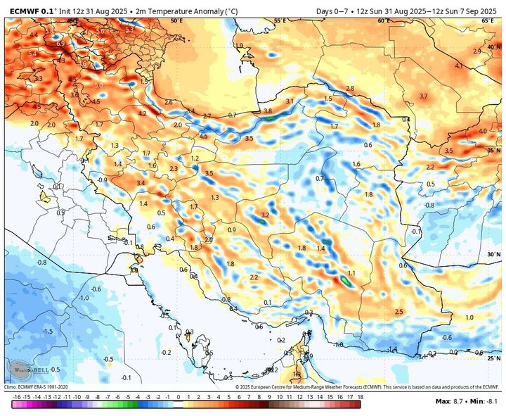 ضیائیان با اشاره به وضعیت جوی پایتخت گفت: آسمان تهران امروز (۱۱ شهریور) صاف تا کمی ابری همراه با افزایش باد پیشبینی میشود و در برخی ساعات احتمال وزش باد شدید و گردوخاک وجود دارد. دمای تهران امروز بین ۲۵ تا ۳۳ درجه سانتیگراد خواهد بود.