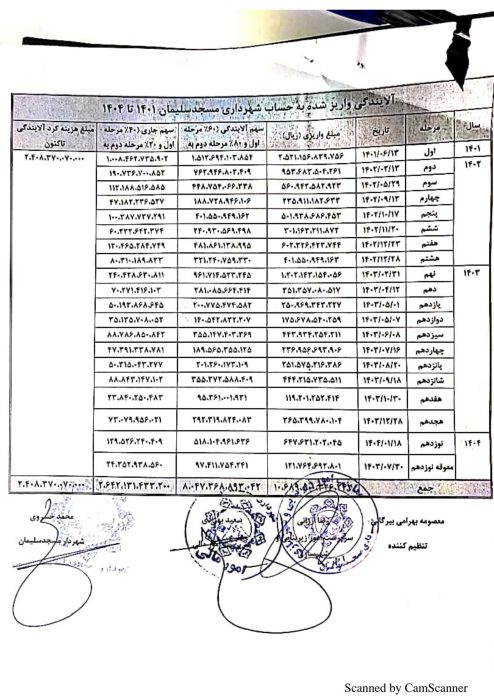 دریافتی حق آلایندگی (۱۴۰۱ تا ۱۴۰۴): مبلغ ۱۰,۶۸۹,۵۰۰,۳۲۶,۲۴۲ ریال که از این مقدار مبلغ ۲۶۴۲۱۳۱۴۳۳۲۰۰ ریال تاکنون در بخش هزینه های جاری(شامل حقوق و دستمزد و حق بیمه و هزینه های جاری شهرداری) و مبلغ ۲۴۰۸۳۷۰۰۷۰۰۰۰ در بخش عمرانی تا مهرماه سال جاری مطابق با جدول پیوست هزینه شده است ضمنا برای الباقی مبلغ موجود در حساب شهرداری پروژه هایی با هماهنگی شهرداری و شورای اسلامی شهر و استانداری تعریف گردیده که در حال انجام می باشند و نظارت مستمر از این هزینه کرد از مسیر شورای اسلامی شهر، فرمانداری و استانداری در حال انجام می باشد.